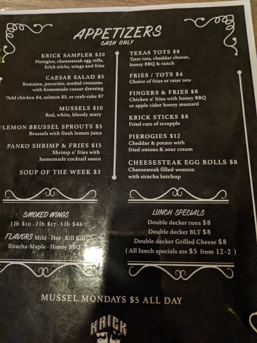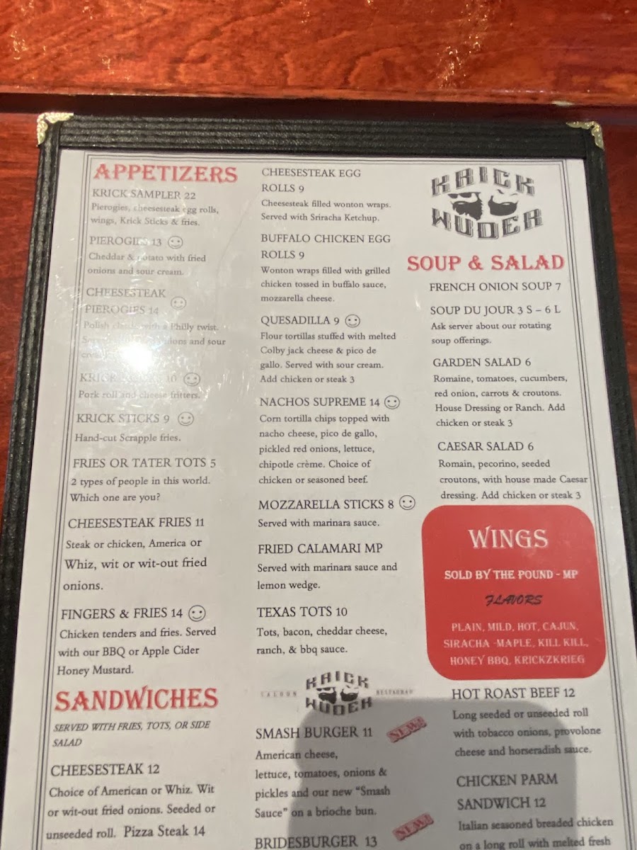 Welcome to Krick Wuder Saloon and Restaurant, where culinary delight meets a vibrant atmosphere in Philadelphia. Located at 2676 Bridge St, this gem captures the essence of casual dining with an enticing menu that boasts something for everyone.